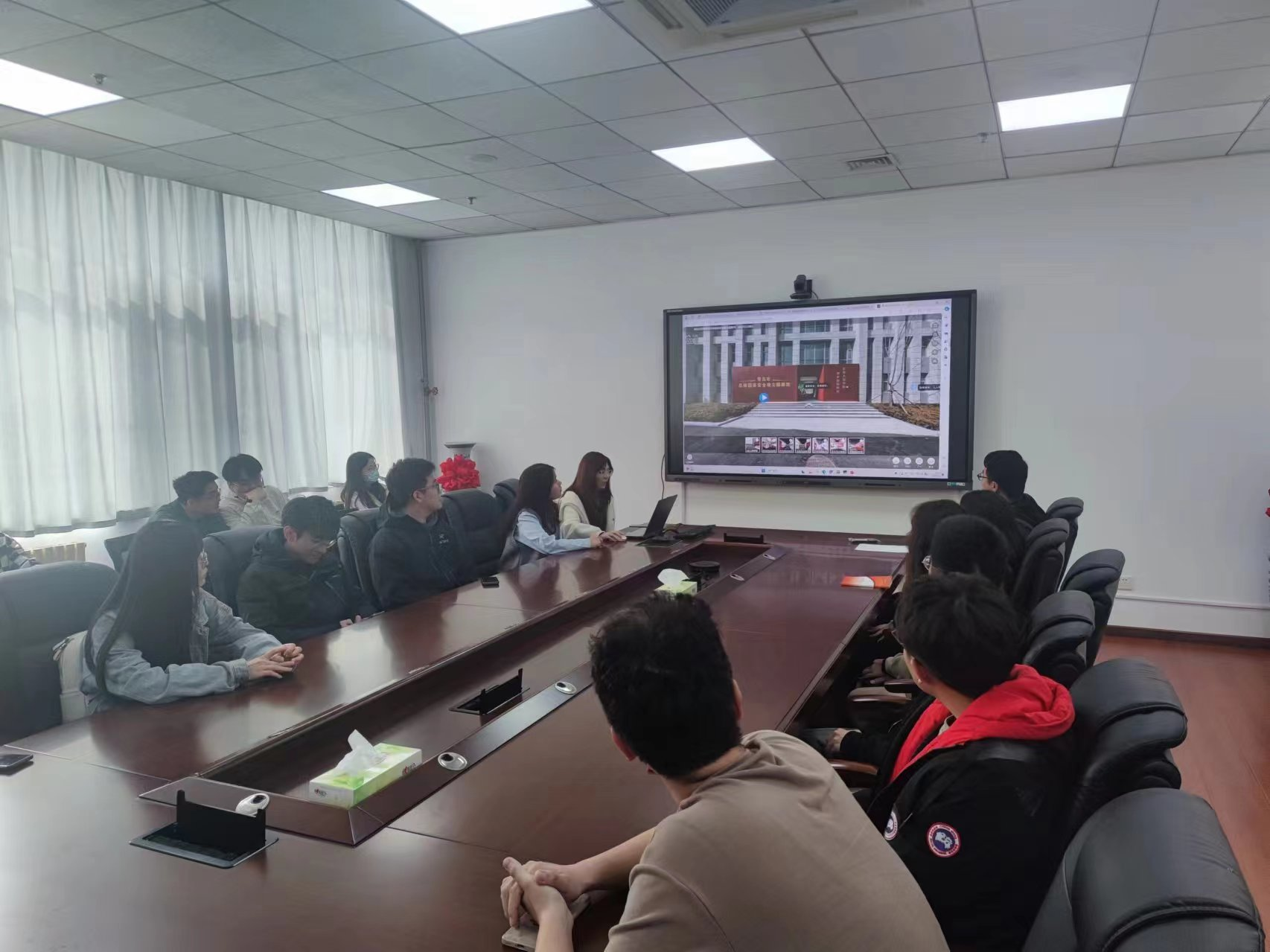 张毅芹同志带领全体党员通过在线平台,深度云体验了青岛市总体国家安全观主题展览馆,内容涵盖国家安全的历史、现实、理论和实践。通过云参观,成员们不仅观看了国家安全教育宣传片,而且深入学习了总体国家安全观的核心理念,从而增强了对国家安全重要性的认识和理解。
