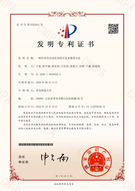 41.专利-一种针对冷启动任务的开发者推荐方法