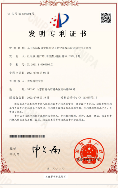 29.专利-基于指标权值优化的化工企业事故风险评估方法及系统