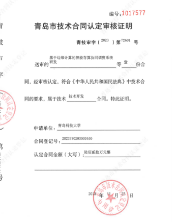 1.2023年横向课题负责人杜军威,金额620万,“基于边缘计算的智能存算协同调度系统研发”