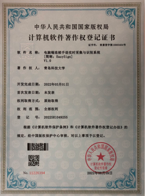67.软件著作权-电脑端连续手语实时采集与识别系统