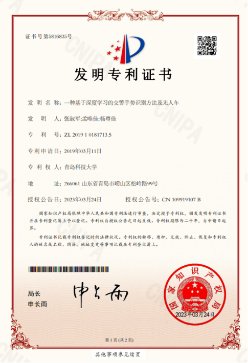 33.专利-一种基于深度学习的交警手势识别方法及无人车