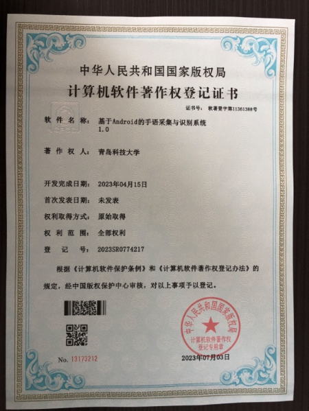 70.软件著作权-基于Android的授手语采集与识别系统