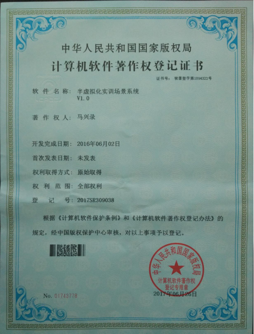 62.软件著作权-半虚拟化实训场景系统V1.0