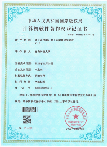 72.软件著作权-基于深度学习的企业实体识别系统