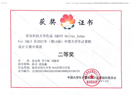1.2022年“挑战杯”全国老员工课外学术科技作品竞赛二等奖