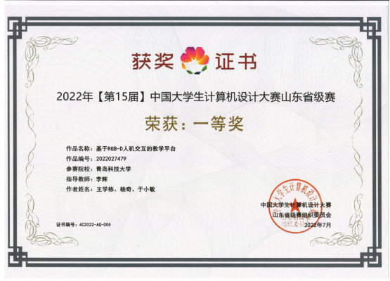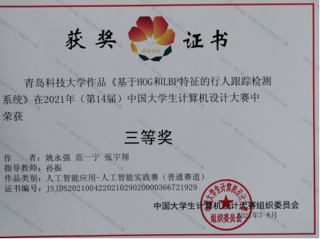 46.2021年中国机器人及人工智能大赛山东省一等奖