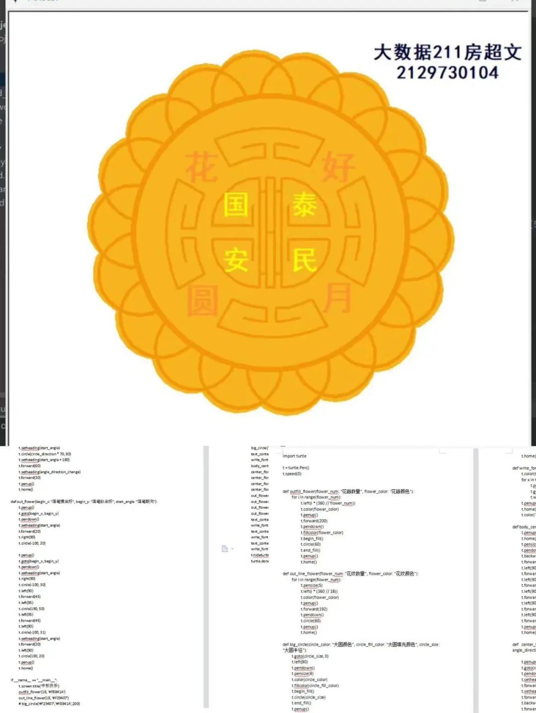 bevictor1946韦德官网的同学们纷纷踊跃参与,用编程的方式为祖国献礼,为家人与朋友送上中秋的祝福,同学们的创意成果都以代码的形式呈现出来。一面面鲜艳的国旗在屏幕上飘扬,每面国旗上都有同学们用代码绘制的祝福;一轮轮皎洁的明月在屏幕上升起,每轮明月都代表了对家人的祝福!