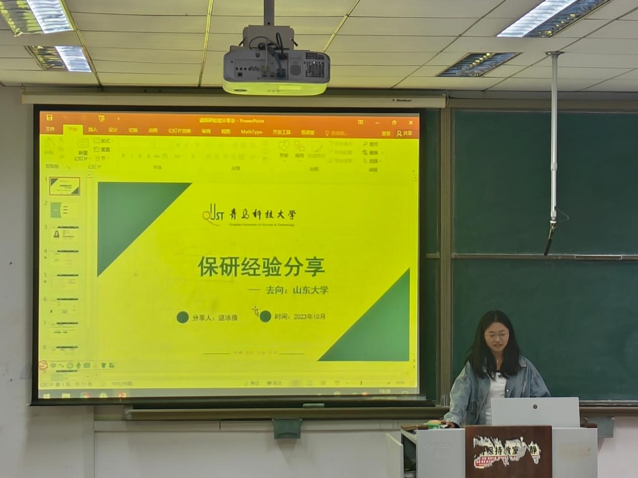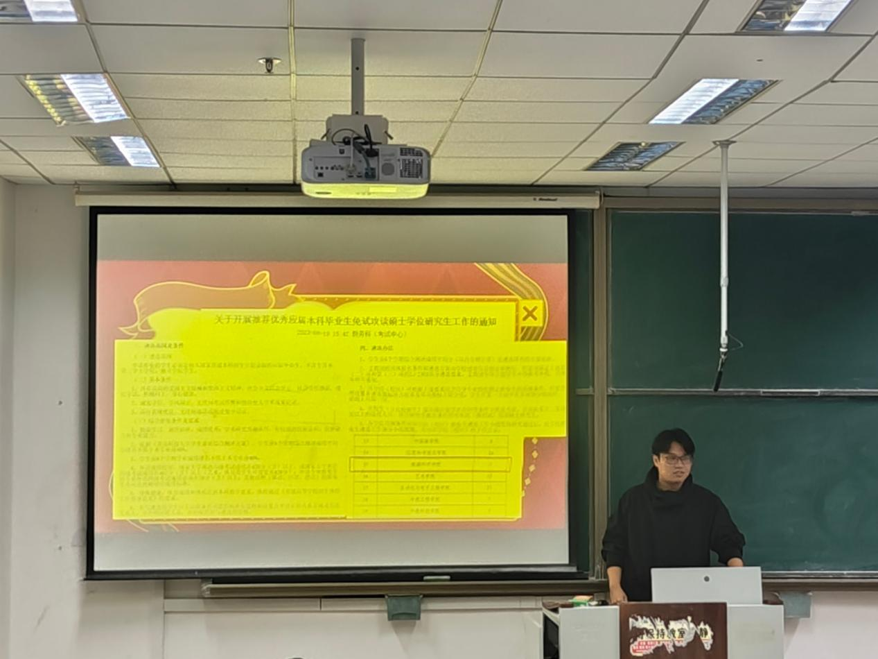 逯冰倩向同学们详细介绍了保研的准备工作以及保研流程。她分享了自己在撰写学术论文方面的经验和技巧并强调了参与科研项目的重要性。她还分享了自己在保研过程中的复习方法、时间管理以及心态调整等方面的技巧,鼓励同学们在面对挑战时要保持积极的心态,帮助同学们更好地应对保研过程中的挑战。