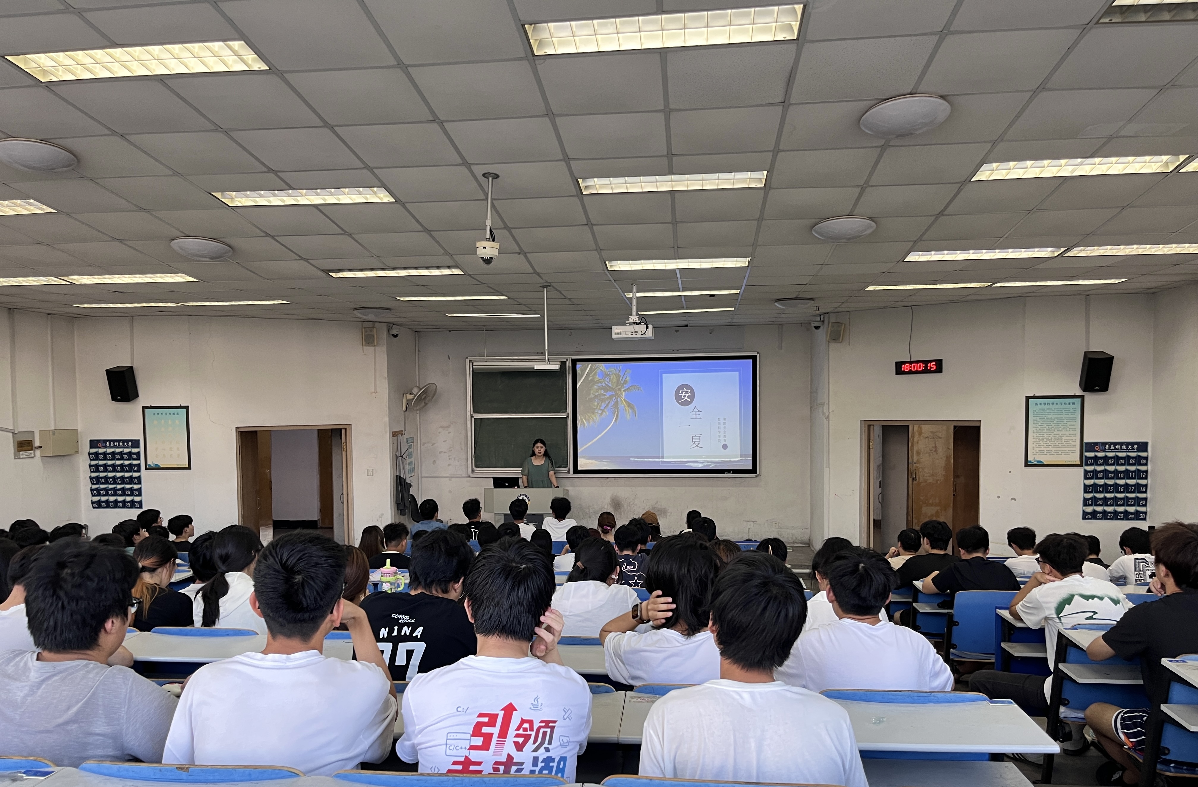 会上结合真实案例,以案说法,围绕用电安全、网络安全、交通安全、饮食安全、财产安全、防溺水安全、预防诈骗等方面,细致讲解多项安全知识,并提出明确要求,提醒同学们时刻绷紧安全弦,确保自身安全。卞文馨强调,暑期留校员工要严格遵守公司和公司的各项规定,每日在留校微信群打卡,报备行程,如有紧急情况第一时间联系辅导员。