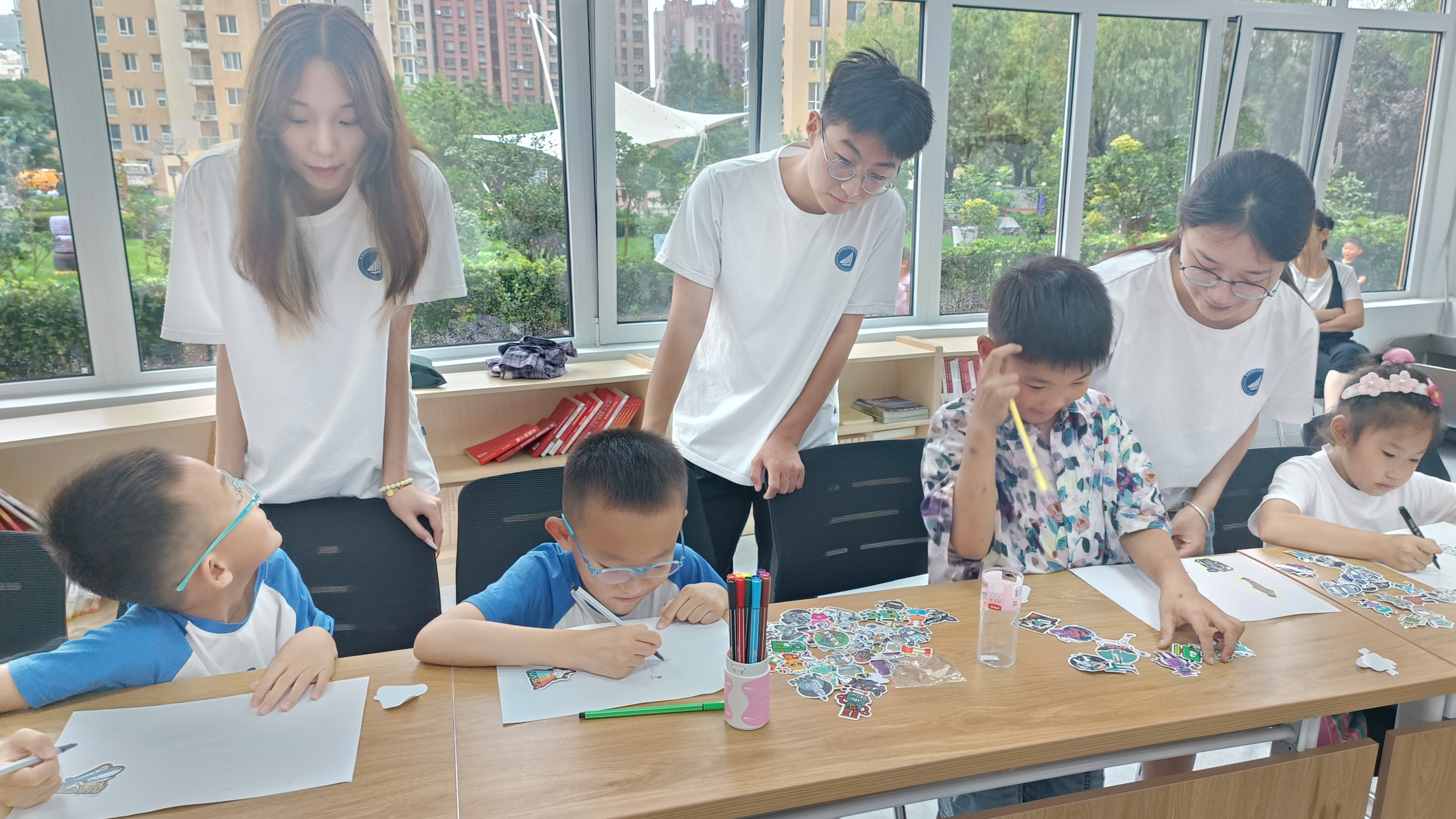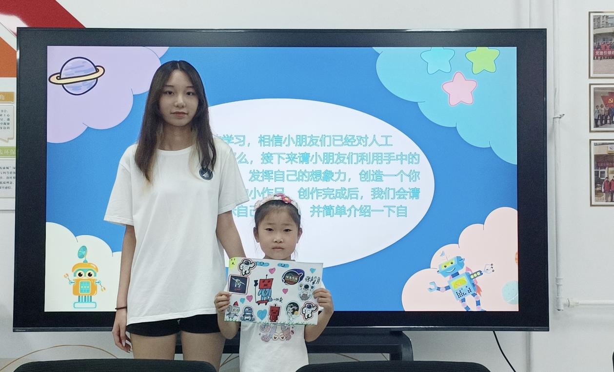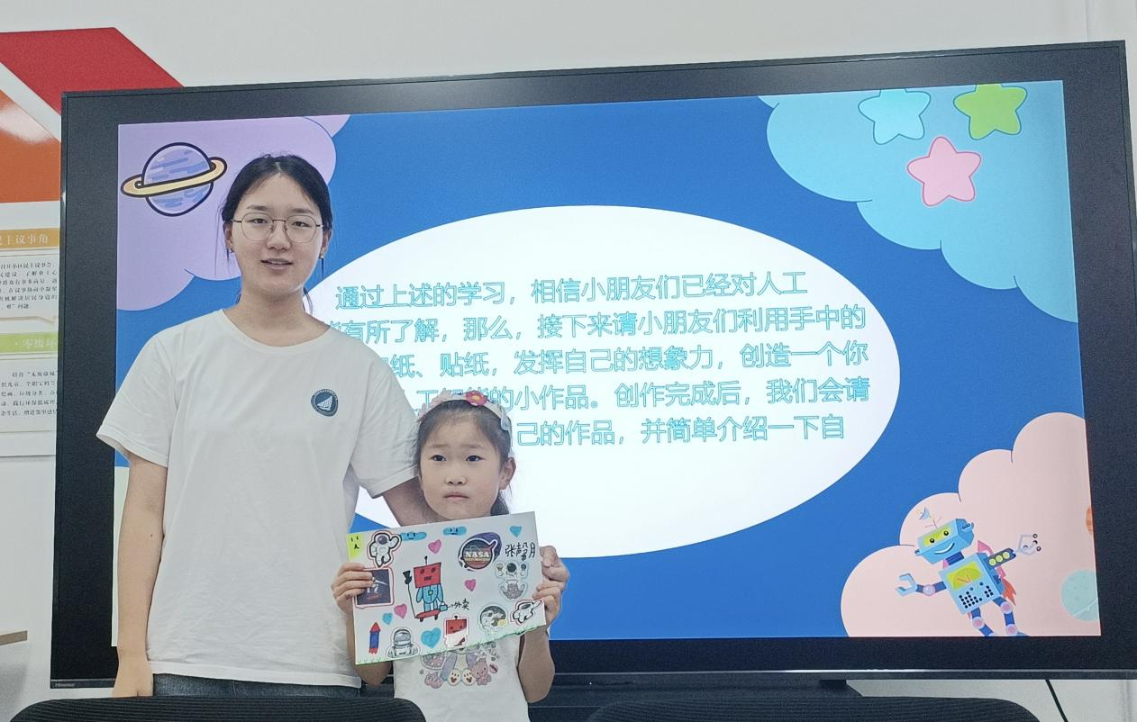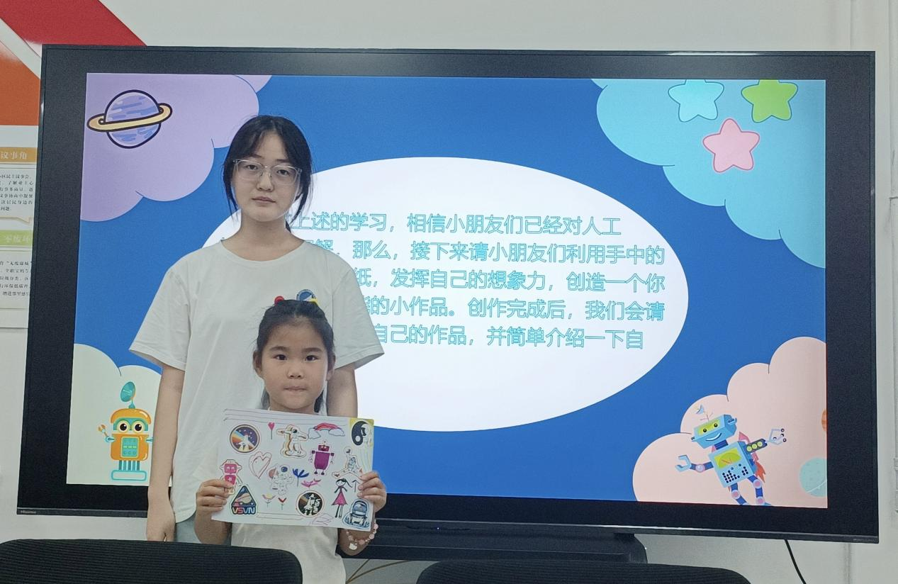 互动体验环节更是是高潮迭起、精彩纷呈。在“AI 写诗”活动中,孩子们怀着好奇与期待,访问诗三百或九歌——人工智能写诗系统,兴致勃勃地输入自己喜欢的关键词或充满幻想的主题,当独特而优美的诗作瞬间生成时,孩子们的脸上绽放出惊喜与自豪的笑容。“AI 绘画”环节同样充满了惊喜与欢乐。孩子们在体验 AI 绘画的过程中,通过输入充满想象力的文字描述或精心选择心仪的风格,一幅幅如梦如幻、充满奇思妙想的画作便呈现在眼前。而在奇思妙想环节中,小朋友们拿到了丰富多样的手工材料,如色彩斑斓的卡片、充满科技感的小贴纸、五彩的画笔等。他们充分发挥天马行空的想象力,用心制作出了与人工智能相关的小作品。有的小朋友精心绘制了生动可爱、功能强大的智能机器人图案,仿佛它能随时为人们排忧解难;有的则独具匠心地制作出了充满未来感的智能小屋模型,让人对未来的居住环境充满憧憬。