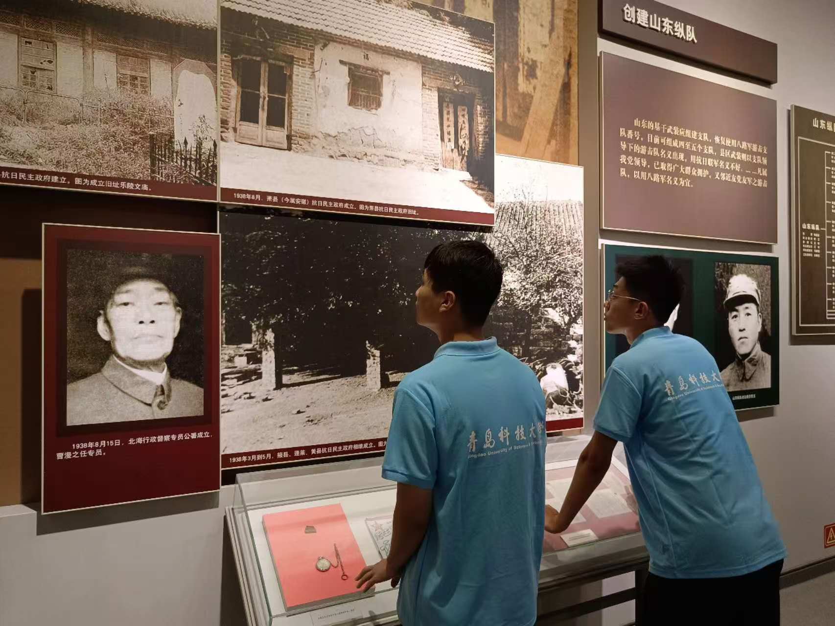 7月27日,宣讲团成员首先来到了莒南县大店镇的山东省政府旧址,在讲解员的引导下,分别参观了八路军115师师部旧址、山东省政府成立地和山东抗日根据地历史展馆。一件件翔实、生动、系统的史料、实物和场景,无声地诉说着那段烽火硝烟的峥嵘岁月,全面反映了八路军115师、山东抗日根据地革命历史文化,展现了山东省政府诞生、成长、发展的光辉历程,革命烈士浴血奋战、沂蒙老区人民拥军爱军,铸就了“党群同心、军民情深、水乳交融、生死与共”的沂蒙精神。参观过程中,宣讲团成员了解到,景区中有一些老旧物件因岁月流逝而受损,目前还没有找到具体的解决办法。宣讲团成员利用自己的专业优势,建议景区用AI制作声光电场景复原等手段,还原它最初的模样。