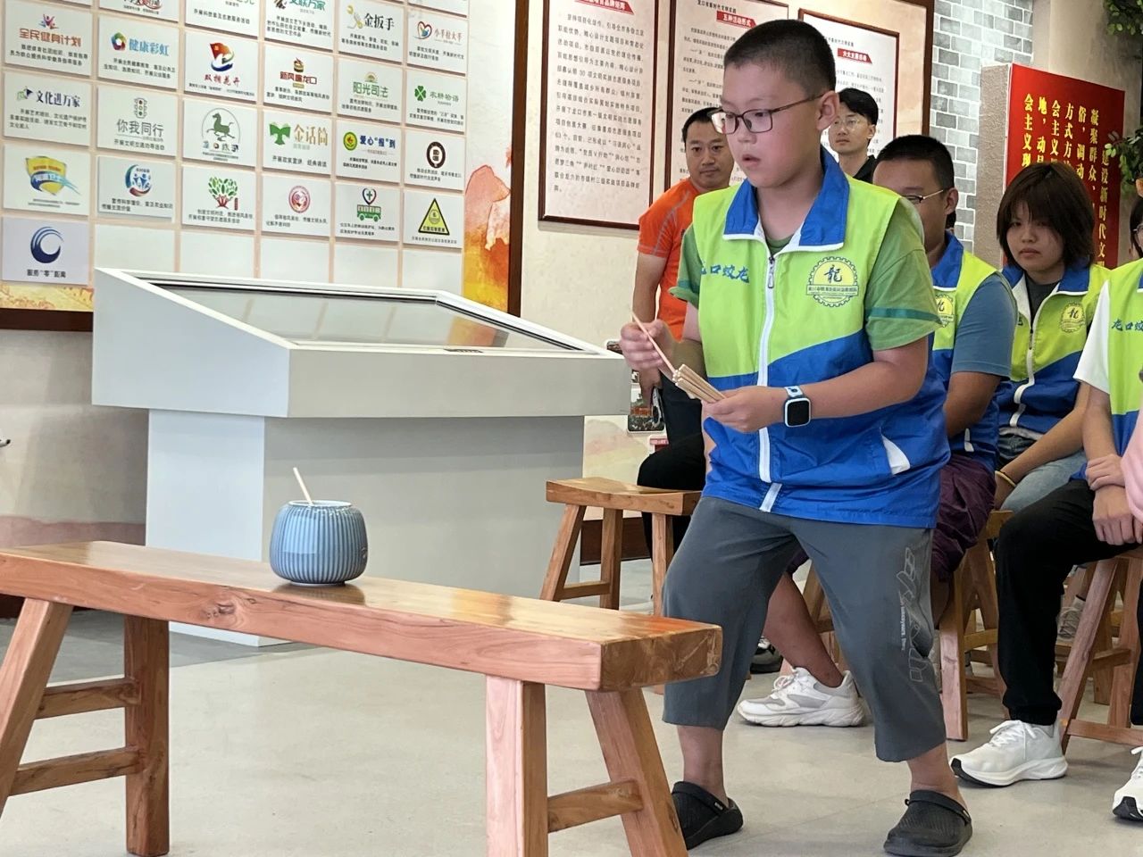 投壶游戏中团队成员们亲身演示投壶技巧,其以其古朴典雅的形式,让青少年们亲身体验了古代文人雅士庆祝节日的乐趣,进一步拉近了他们与传统文化的距离。