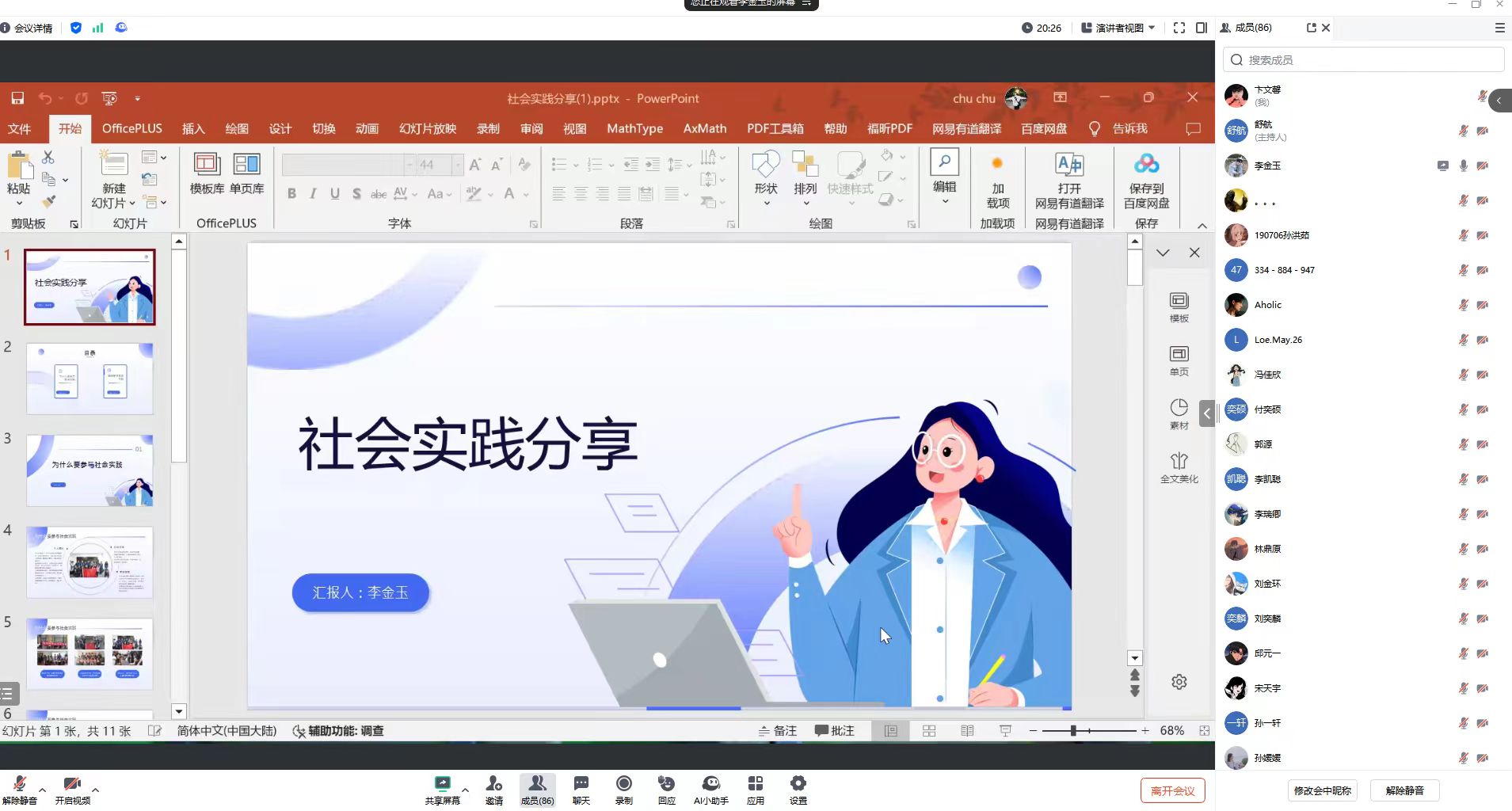 优秀毕业生代表宫传政同学分享了自己的本科成长路线,并向新生介绍了如何有效进行大学学习、如何积极参与科创竞赛等方面介绍了自己的经验,帮助新生正确调整心态,积极迎接新的学习生活。随后“小星云”志愿服务团队负责人李金玉围绕社会实践和志愿服务为新生展开了详细的介绍和动员,鼓励同学们走出校园、走向社会,积极参与到社会实践当中。