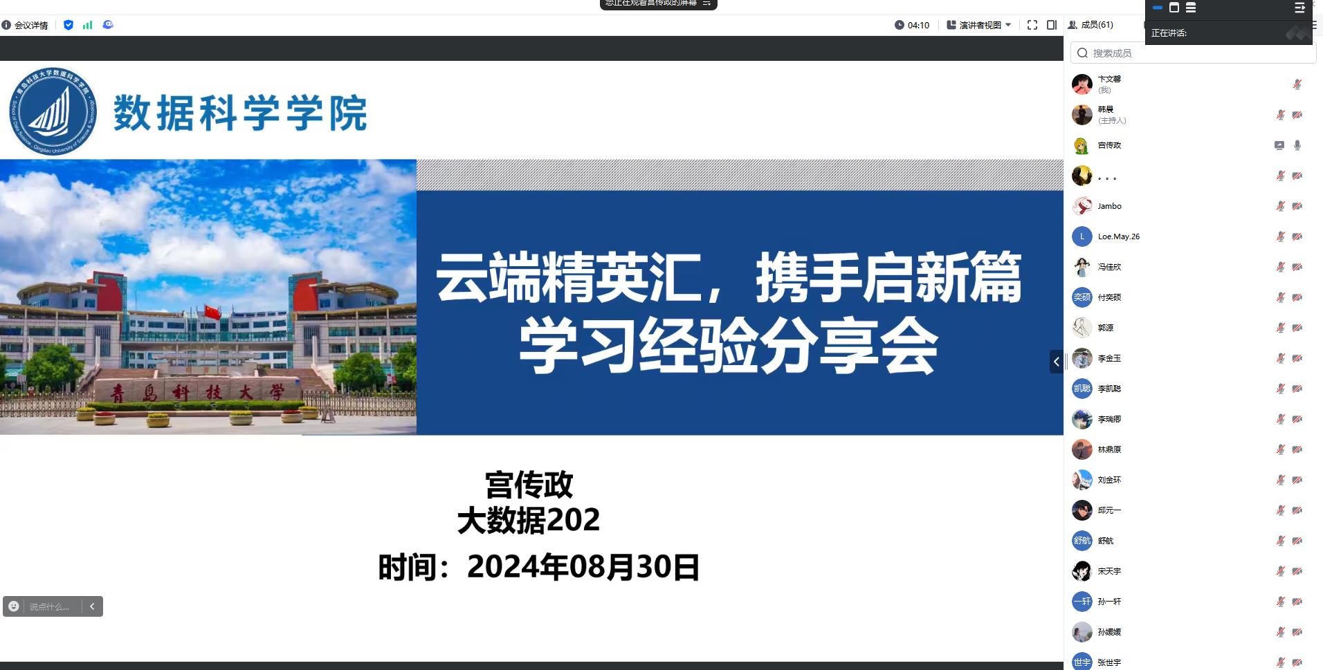 为帮助新生更好地适应老员工活,公司于8月30日下午通过腾讯会议进行了一场别开生面的“云端精英汇,携手启新篇”新生线上见面会。