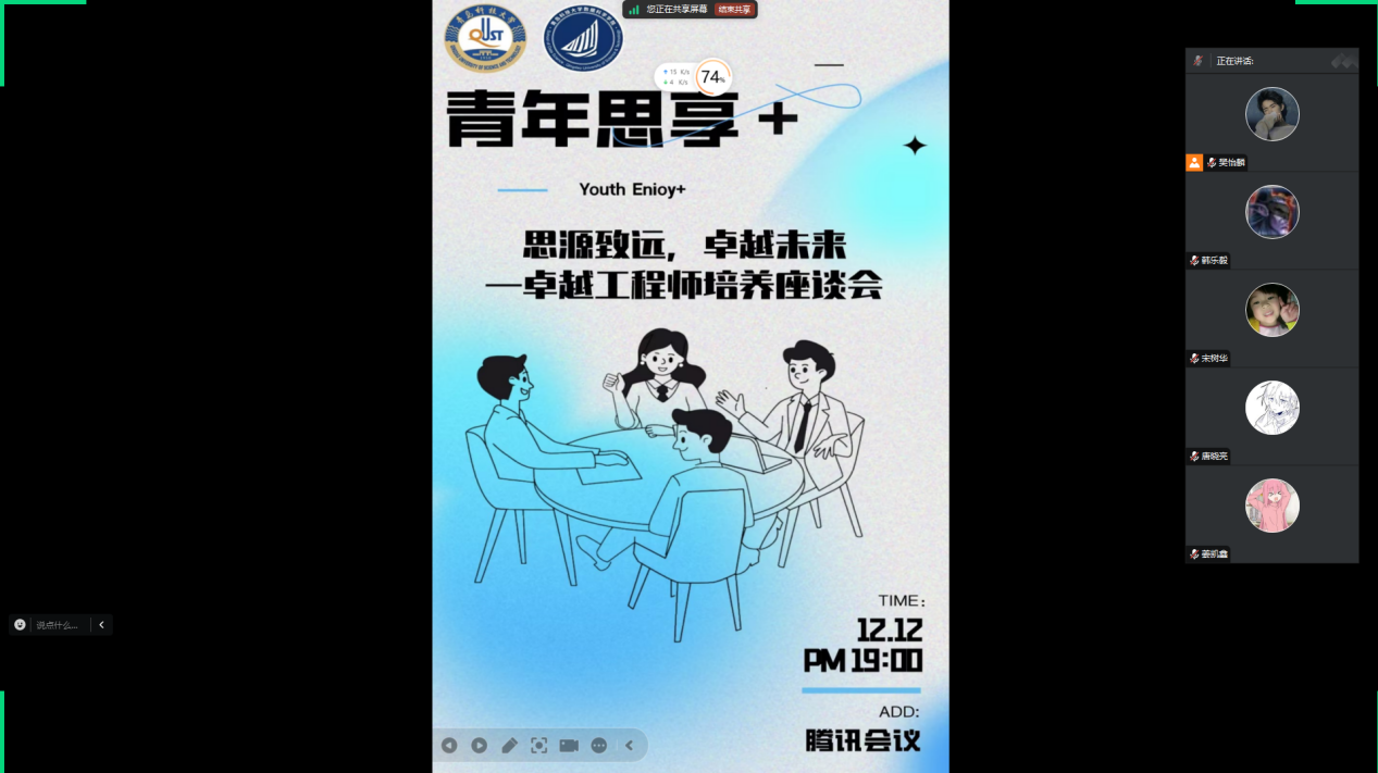 12月11日晚上,bevictor1946韦德官网线上召开“青年思享+”卓越工程师培养座谈会。数据科学公司党总支副书记兼副经理顾姗姗主持会议,副经理李辉,卓越工程师负责老师陈卓,赛轮集团股份有限公司、软控股份有限公司、中科星图智慧科技有限公司和青岛思锐卓远信息技术有限公司的企业导师参加座谈。