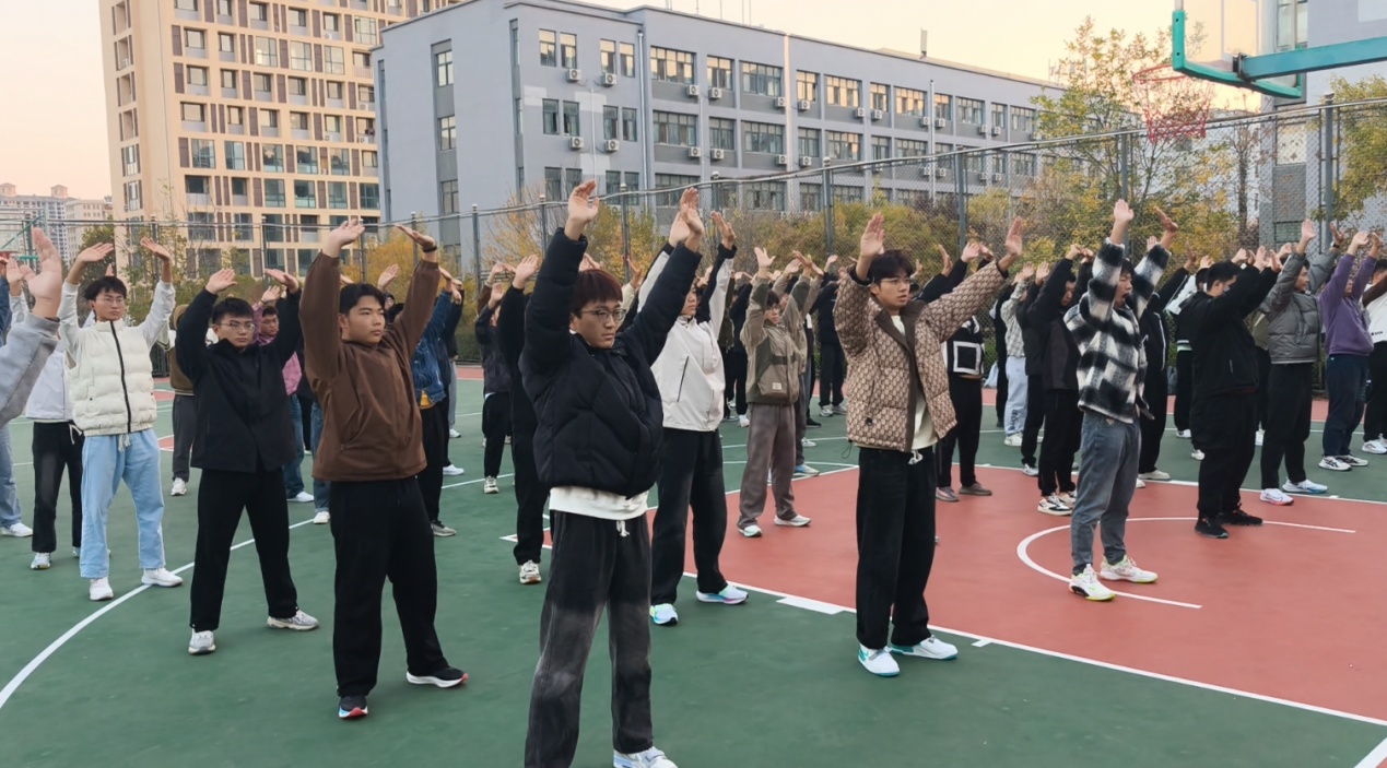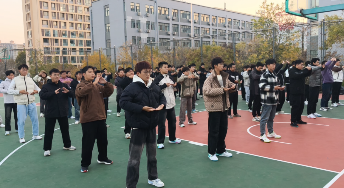 尽管寒露时节,寒意渐浓,但同学们的热情依旧高涨,他们提前到场,积极参与热身运动。阳光下,每个人的脸上都映着专注与平和,八段锦的每一个动作都像是一幅流动的画卷,展现了人与自然和谐共处的美好瞬间。这不仅是一次身体的锻炼,更是一次心灵的洗礼,让同学们在忙碌的生活中找到一片宁静的天地。