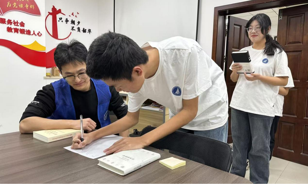 本次活动分为义捐签到、好书分享、留言寄语、合影留念几项环节。参加义捐活动的同学们带着自己珍藏的书籍前来分享,写下对他人祝福的话。