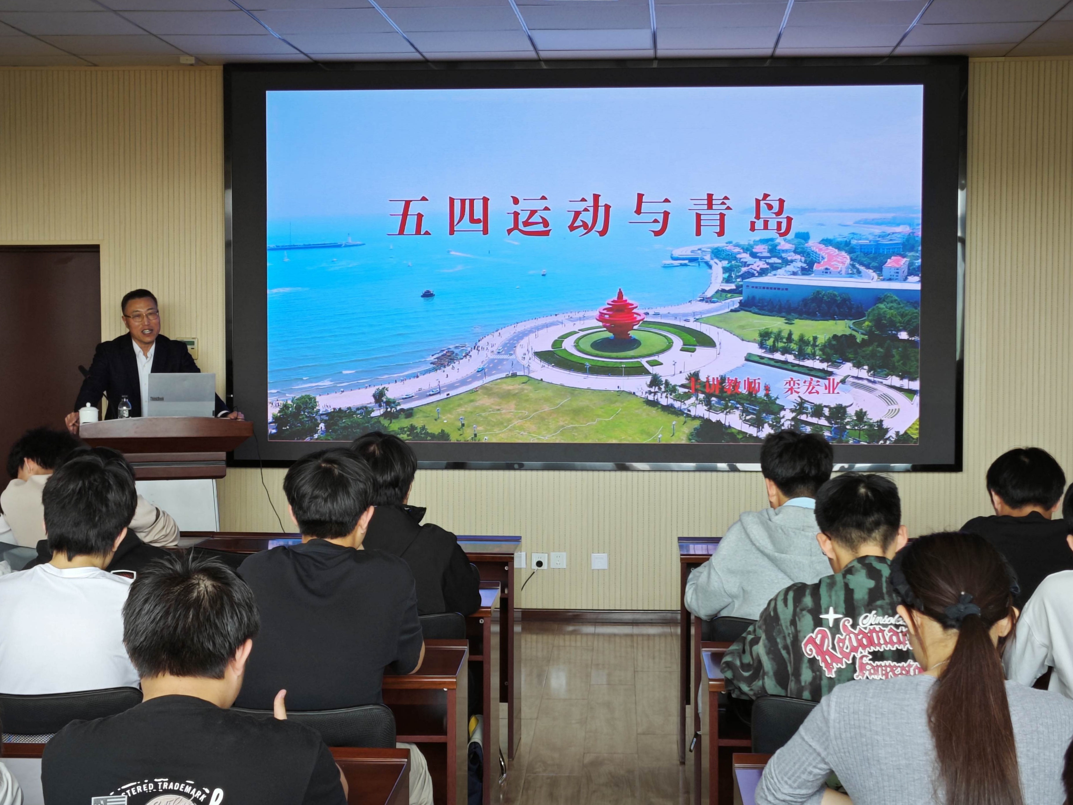 课程聚焦五四运动的历史背景与青岛的深层关联,栾宏业从“青岛是五四运动的导火索”“收回青岛主权是核心诉求”“青岛主权回归是胜利成果”三个方面系统展开讲解,带领同学们重温这段波澜壮阔的历史进程。