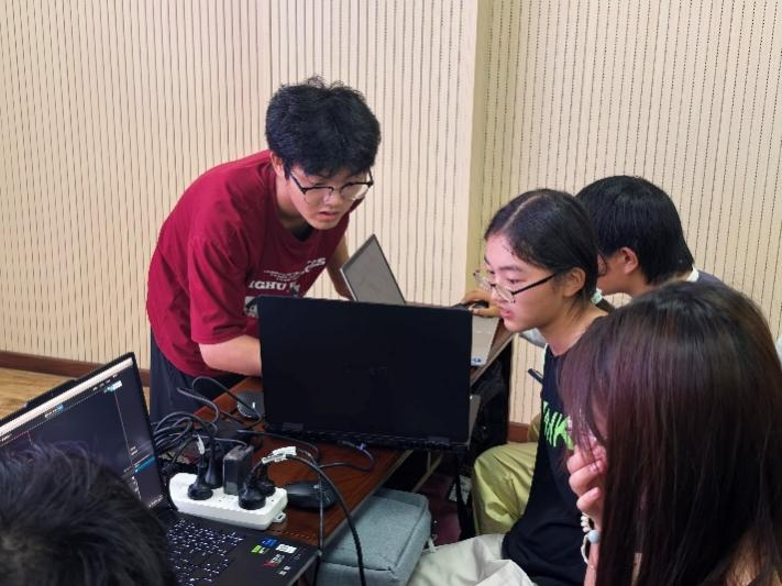 培训伊始,魏建基结合学员基础水平,从软件下载环节切入,通过分步引导,确保每位学员均能准确完成安装操作。随后,他围绕 hirender S3 软件的核心用途,从功能解析、实例场景演示、实操步骤拆解三大维度展开讲解,借助大屏实时演示实操流程,内容直观易懂,有效降低学员学习门槛。针对不同屏幕尺寸适配、网络连接卡顿、文件传输丢失等常见实操问题,他逐一拆解痛点并提供可落地的解决方案,帮助学员提前规避工作风险。考虑到舞台播控工作的严谨性与专业性,魏建基同步为学员开展专项心理建设,强调播控工作需以 “强抗压能力” 为基础,提前做好突发情况的预判与处置准备。培训尾声,他以2024级迎新晚会舞台播控工作为实例,完整演示播控全流程,涵盖海报精准投放、节目专属屏显设计、音频同步处理及主屏与侧屏协同设置等关键环节,让学员深刻理解培训的实践价值。