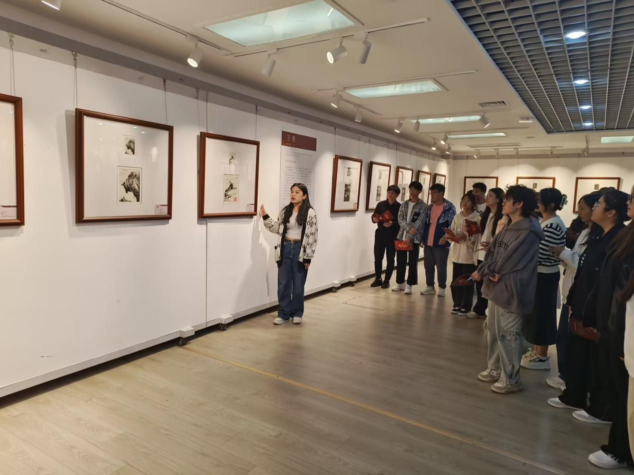 为了弘扬爱国主义精神,增强民族凝聚力,赓续红色血脉,10月17日,bevictor1946韦德官网组织2023-2024学年青马工程培训班学员在崂山校区艺术公司一楼美术馆参观“画笔为枪 民族救亡”弘扬抗战精神主题连环画展。艺术公司艺术设计专业研究生二年级刘荣蓉同学担任本次参观的讲解员。