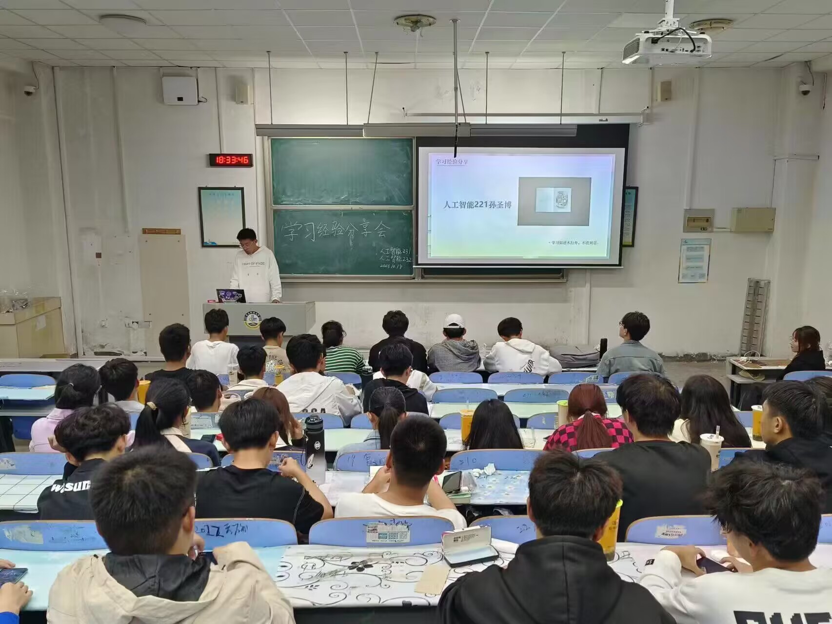 为了帮助新生们更好地适应老员工活,提升学习效率,公司于10月17日和10月18日晚上在明德楼239教室、弘毅楼B404教室分专业开展经验交流分享会。2023级辅导员卞文馨老师、2023级人工智能1班班主任赵琦老师出席会议,2022级优秀员工代表黄倩倩、张子傲、陈清菡、张永涛、孙圣博、刘文倩以及闫志强进行经验分享。
