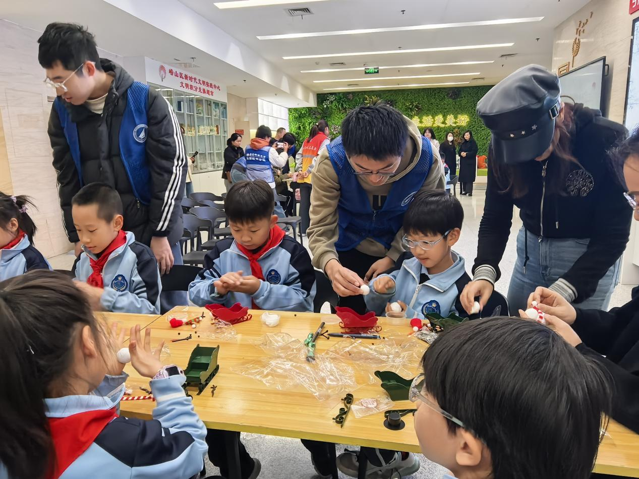在手工实践环节,志愿者们发挥专业所长,进行雪人小手工制作示范,指导员工完成材料拼接、细节装饰等步骤。孩子们踊跃参与、创意十足,在动手实践中直观感受“冬韵”的美学内涵,一件件充满童趣的作品成为节气文化具象化的生动载体,现场氛围热烈而温馨。