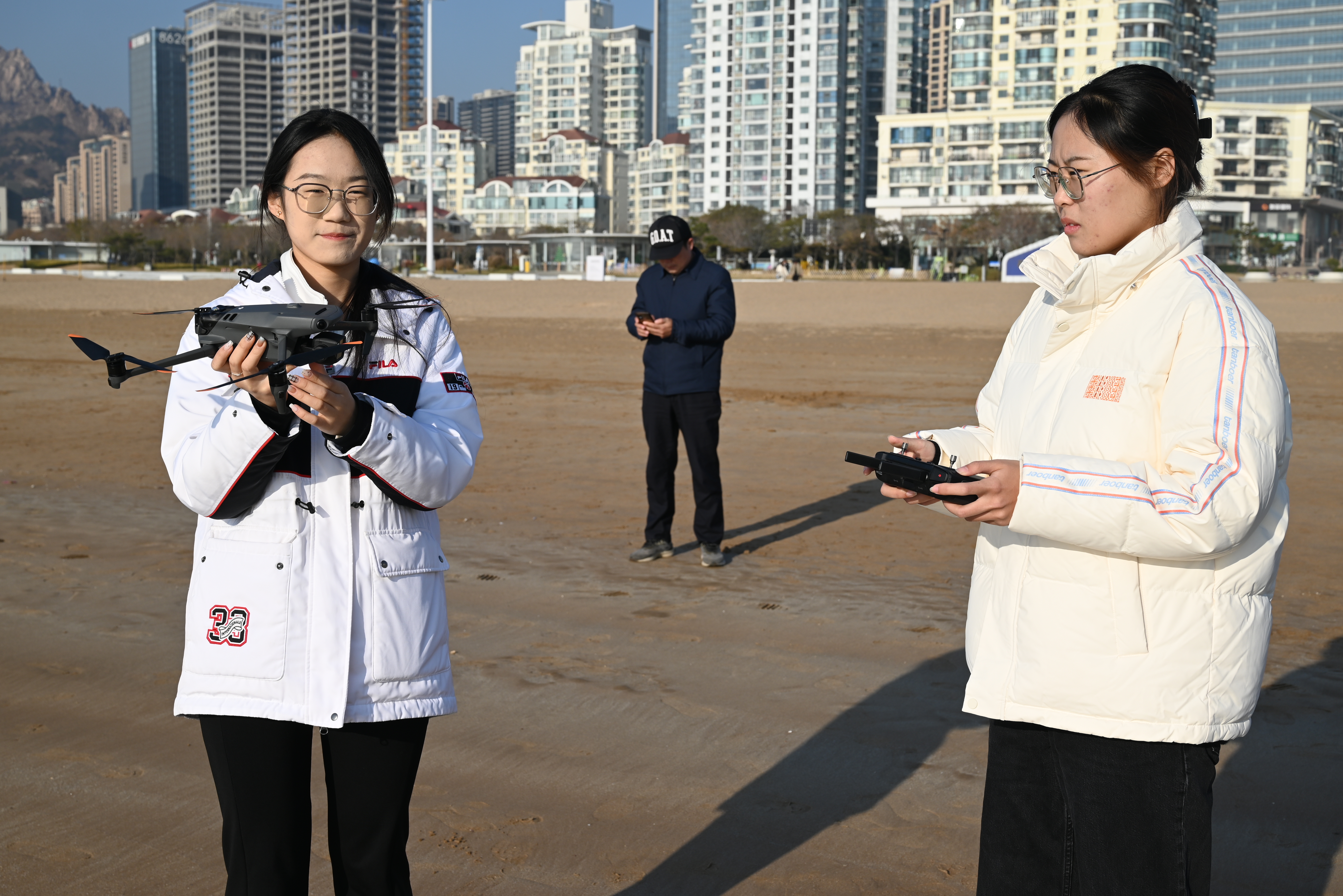 在石老人海水浴场和垃圾分类主题公园,无人机凭借高空视角优势,对浴场沙滩、海岸线、公园园区等区域进行全方位巡检,快速定位散落垃圾点位并实时传输画面至志愿者手中的终端设备。接到指令后,志愿者们迅速分组行动,携带分类垃圾袋前往指定区域,将塑料瓶、食品包装、贝壳等垃圾精准分类收集。