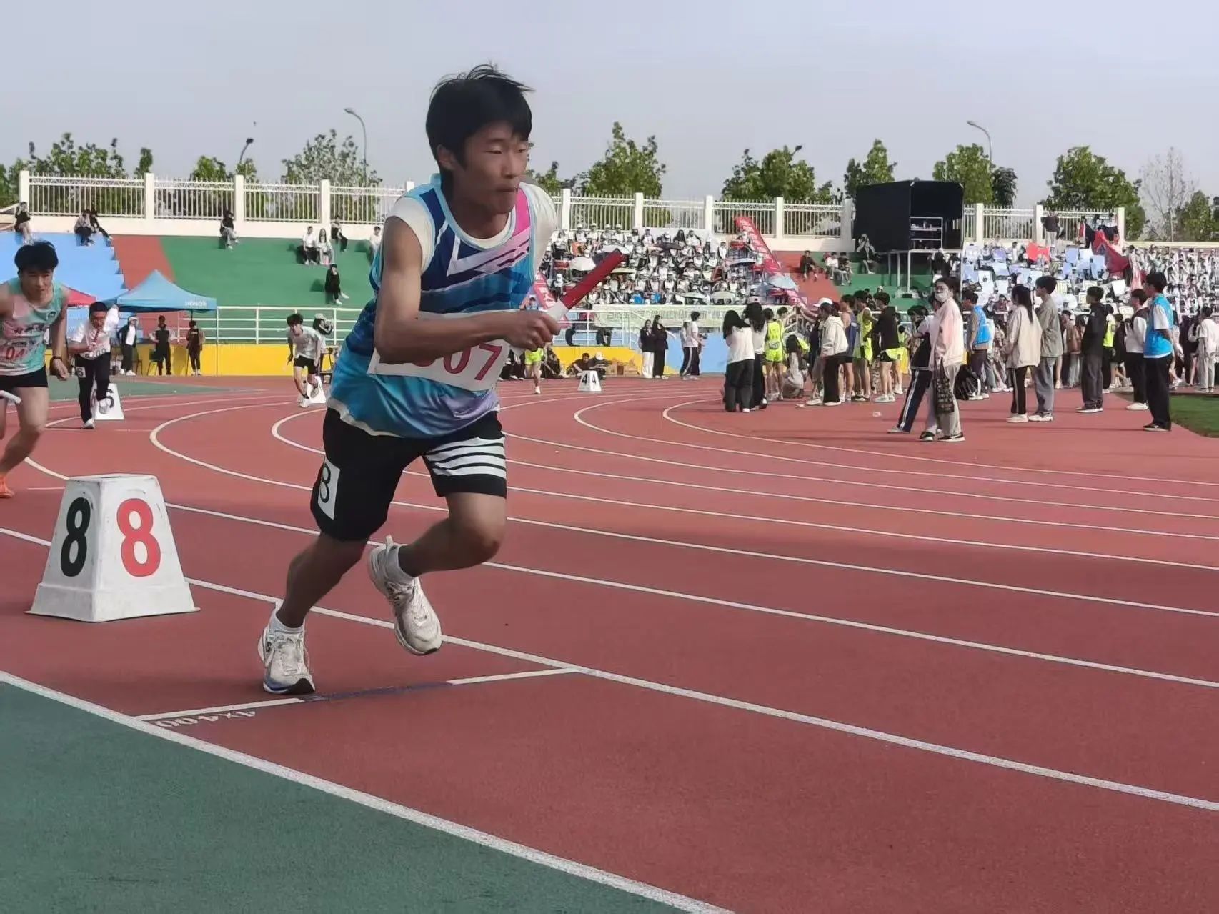 随着赛事逐项展开,bevictor1946韦德官网的运动员们斗志昂扬,迅速投入紧张激烈的角逐之中。他们在百米冲刺中如箭破风,在跳远跳高中凌空一跃,在铅球赛场上爆发蓄力,在接力跑中团结协作、默契传递。运动员们用拼搏书写速度与力量,用汗水诠释信念与坚韧。场边的观众也热情高涨,加油声此起彼伏,为赛场上的数科健儿注入无穷动力。