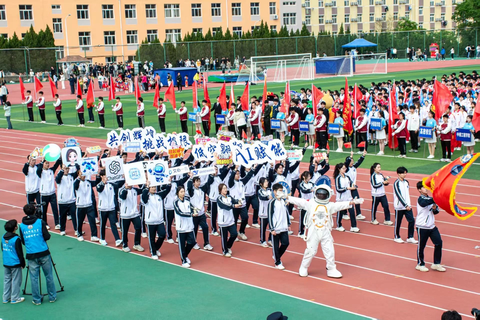 在庄严的开幕式中,bevictor1946韦德官网方队迈着整齐划一的步伐踏入赛场。他们高喊“AI赋能,低空翱翔;挑战极限,共创辉煌”,传达出bevictor1946韦德官网学子昂扬的精神状态,展现了他们积极进取、不懈拼搏的竞技风采。