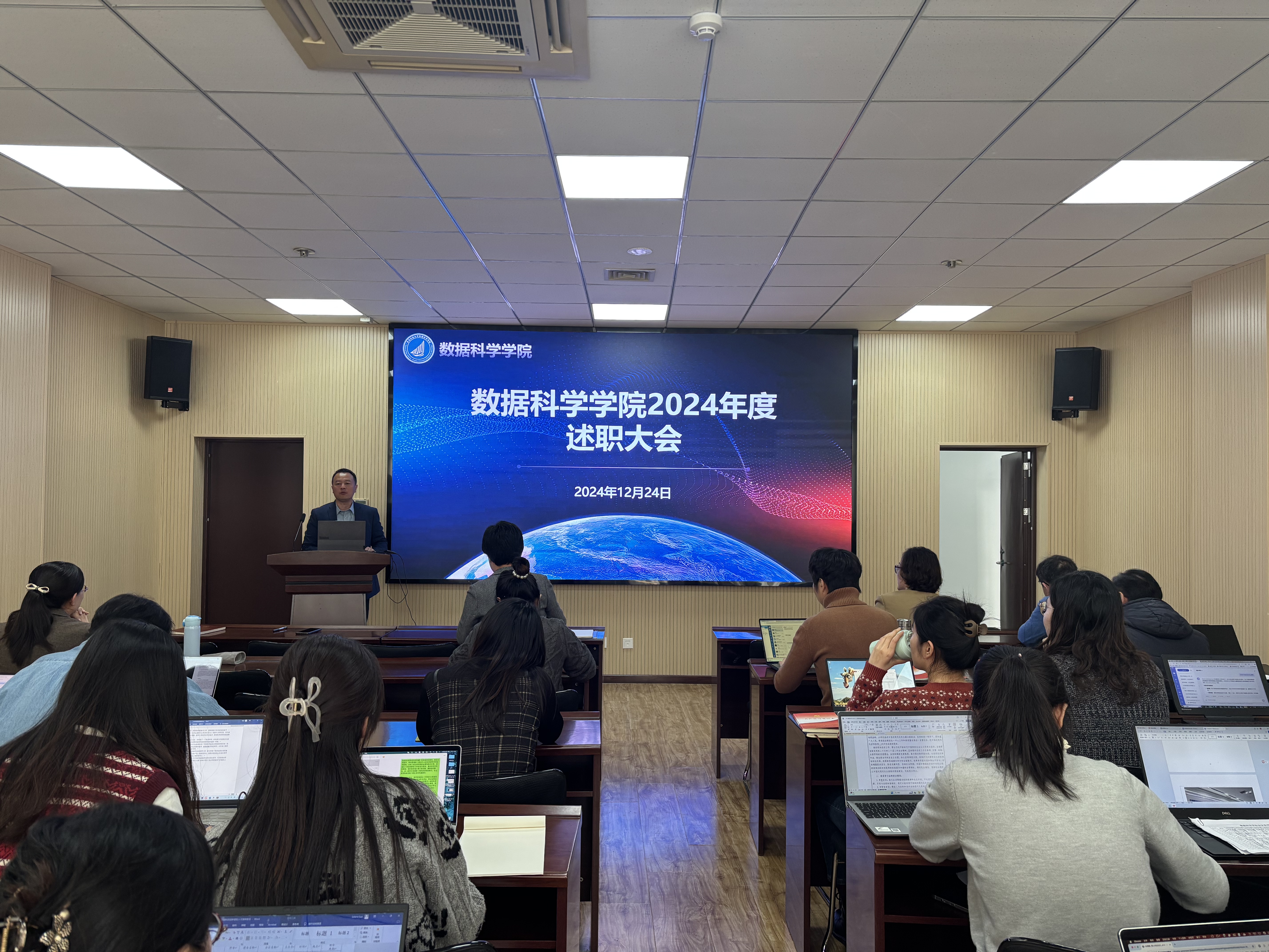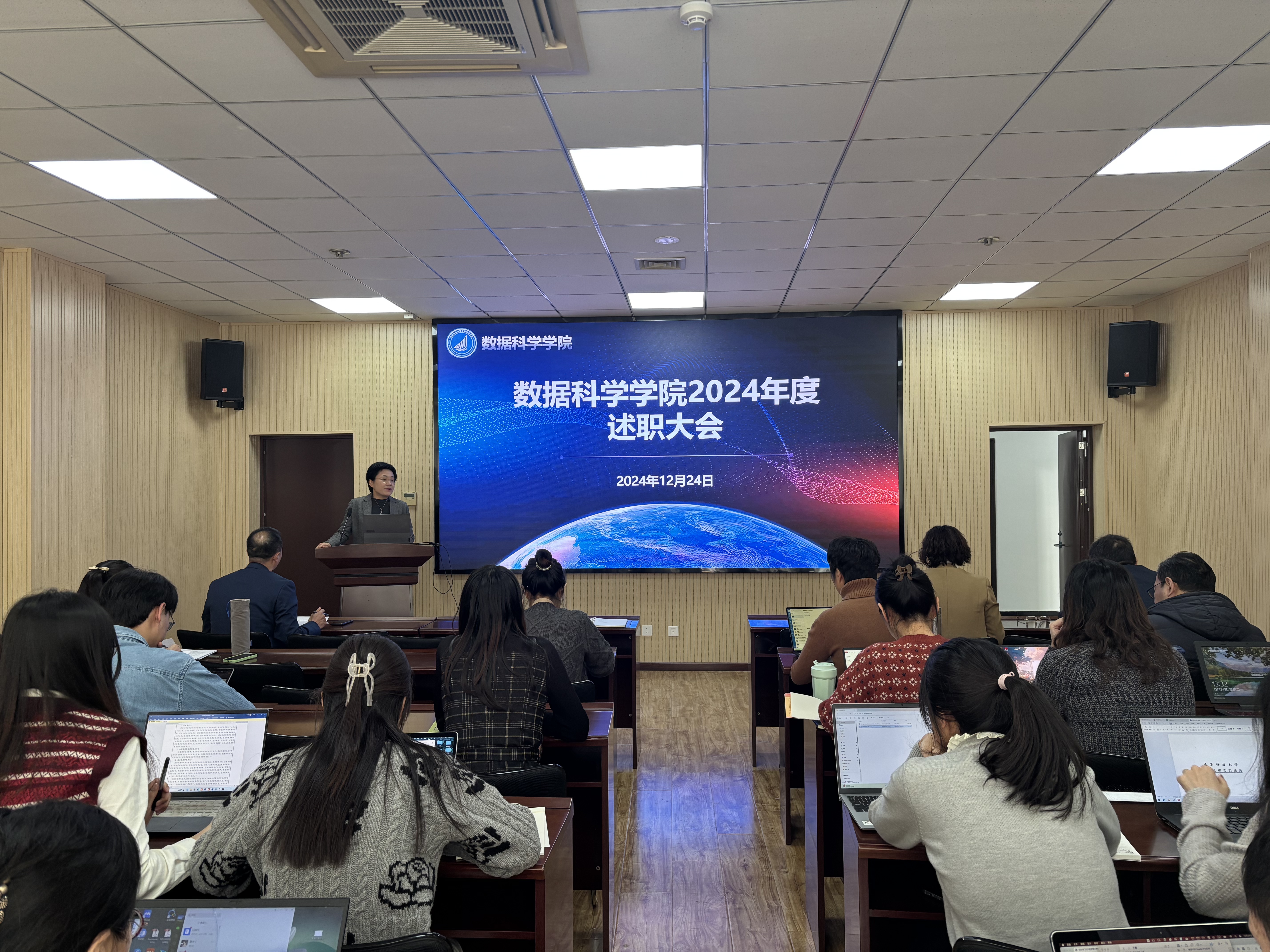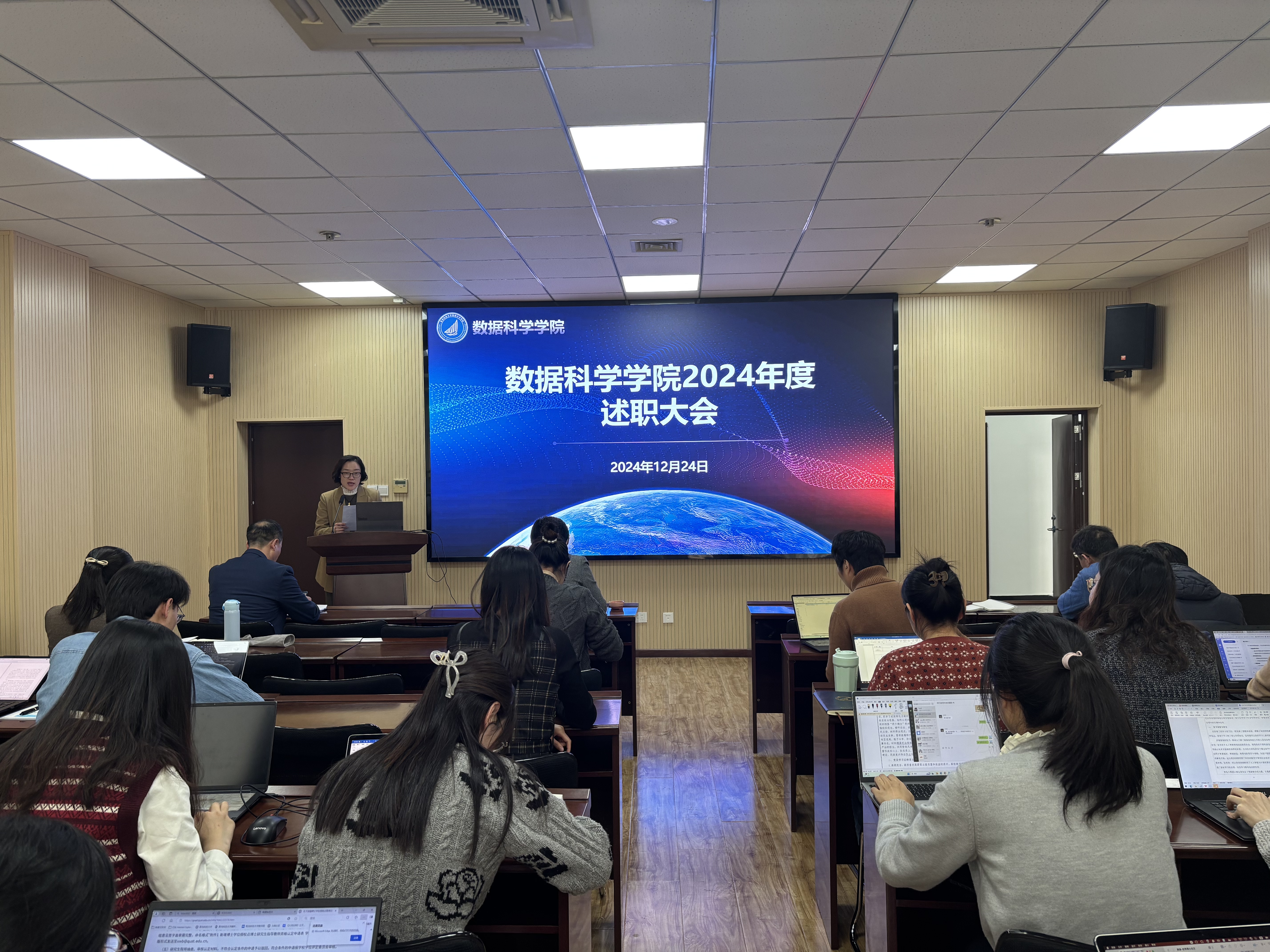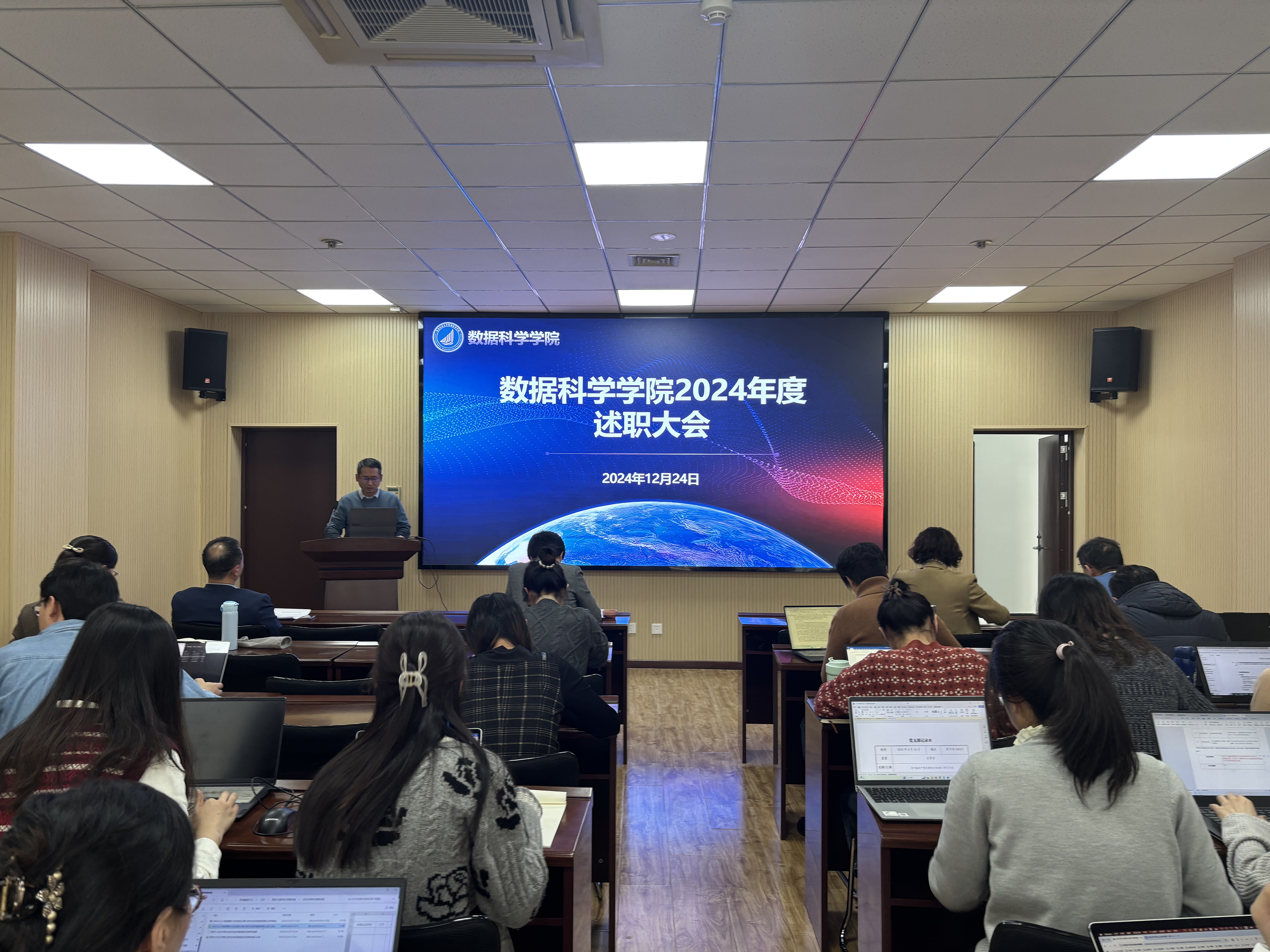 各教研室、教辅部门及管理岗位的教职工分组进行述职。他们分别从教学科研、实验室建设、教学支持及行政管理等角度,汇报了各自的工作进展和取得的成就。