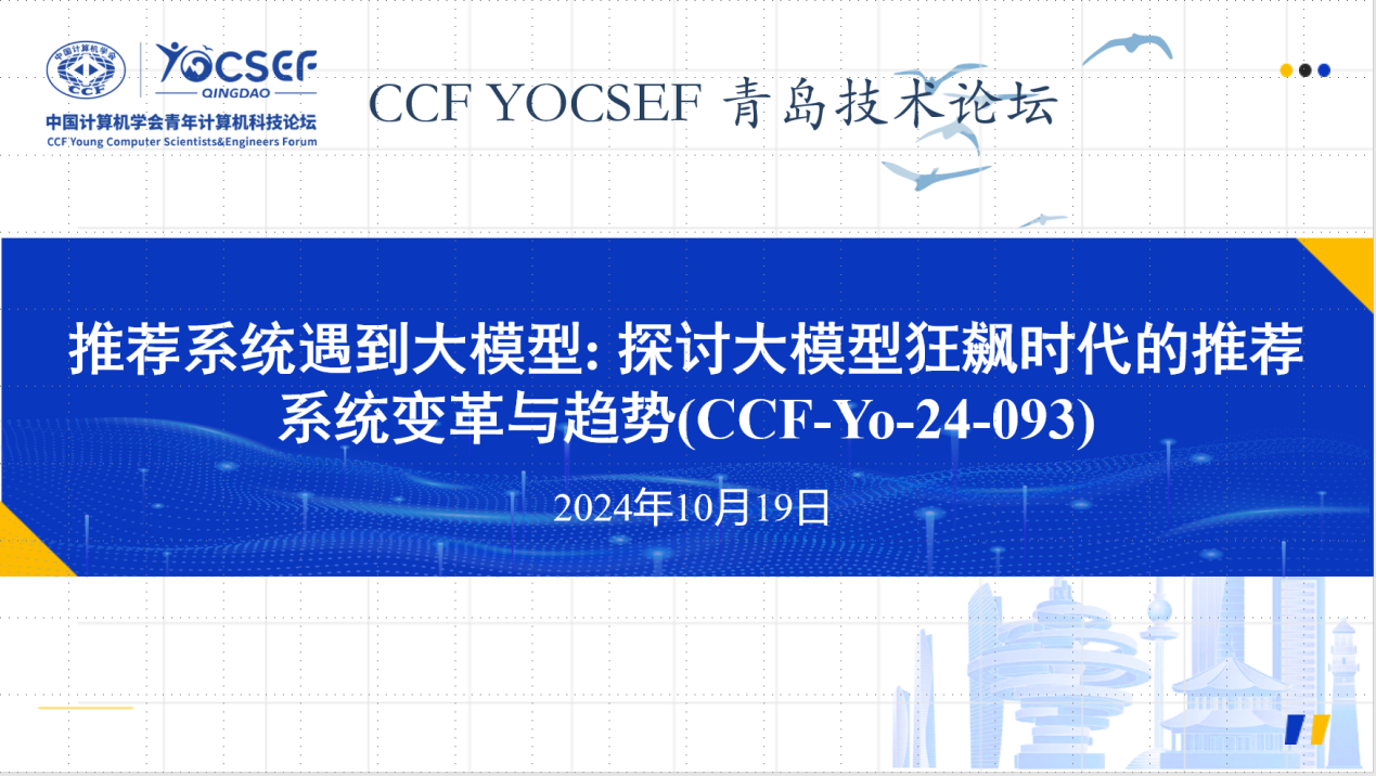 10月19日,CCFYOCSEF青岛技术论坛“推荐系统遇到大模型”在公司成功举办,论坛采取线下加线上的形式进行,对大模型狂飙时代,推荐系统的变革与发展趋势展开思辨研讨。