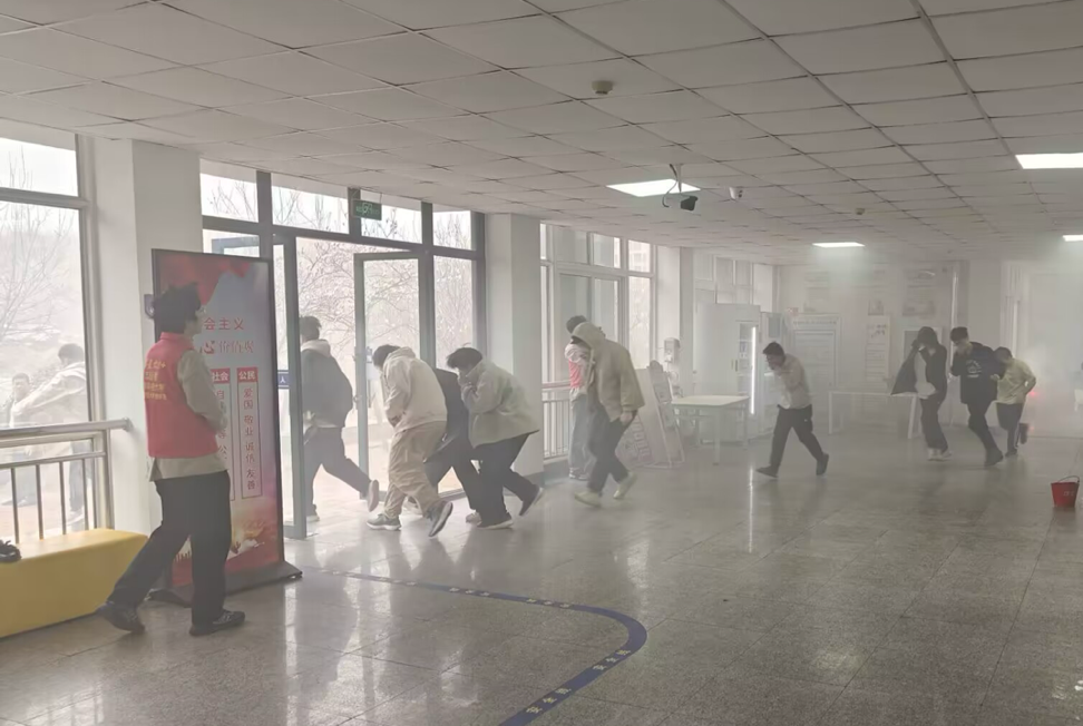 下午1点30分,各楼层的负责老师提前到达指定岗位,对疏散通道进行最后的检查。随着一阵急促的警报声响起,接到紧急疏散信号后,员工们在老师的带领下,捂住口鼻,弯腰俯身,快速有序地往预定地点疏散。员工疏散完毕后,各区域负责疏散老师认真负责地检查该层的所有教室、通道,确保全部人员安全撤离。到达疏散地点后,同学们迅速整队,并清点、统计人数,确保已全部撤离到安全空旷的地带。