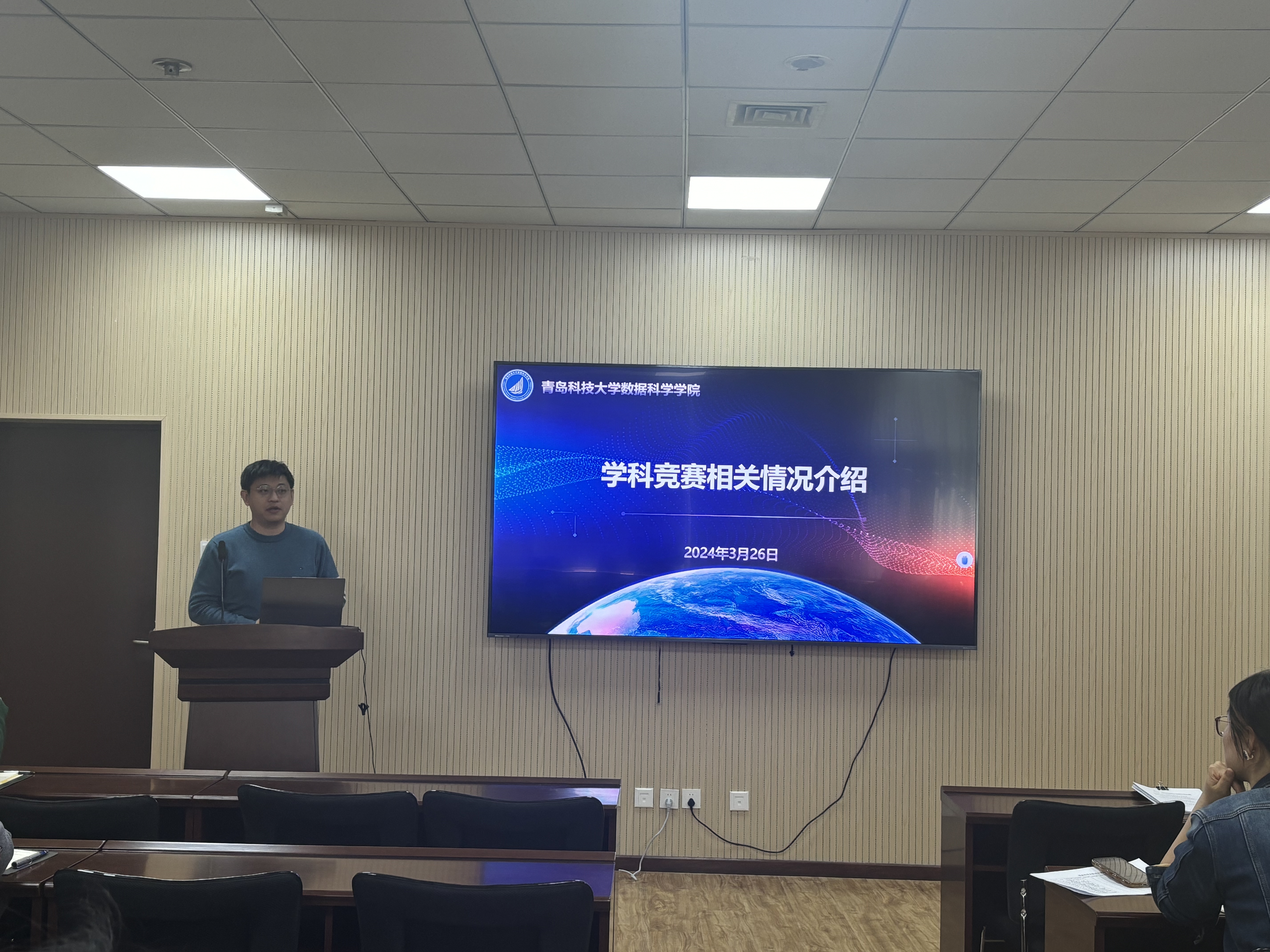 辅导员姜国华对学科竞赛的具体内容、参赛要求和注意事项进行了介绍,从队伍梯队化、结构健康化、项目多样化方面介绍了员工科创队伍建设。