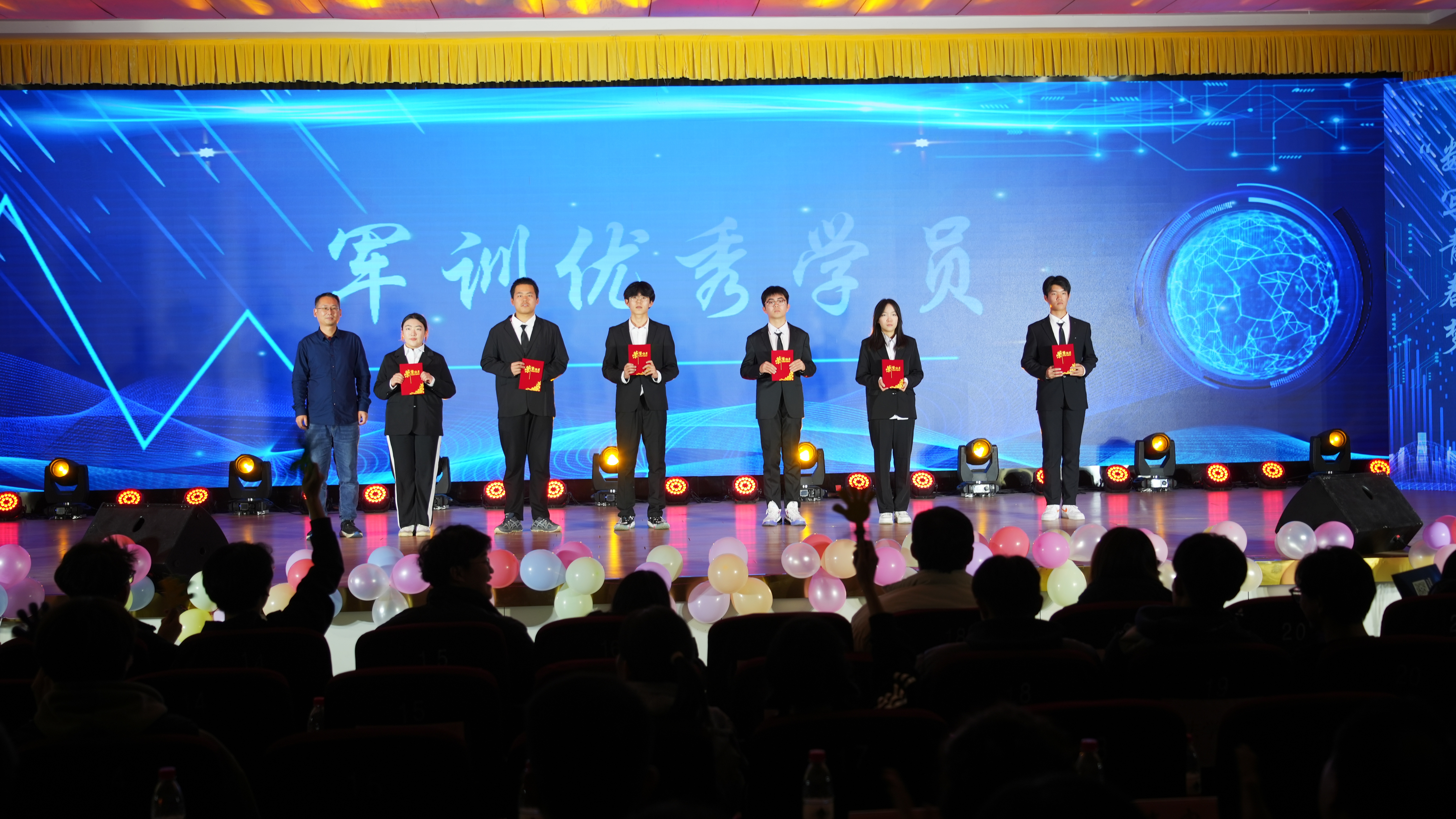 各篇章间歇,举行了军训优秀学员颁奖仪式、2022—2023学年第二学期爱体育标兵表彰仪式、领航学长学姐聘任仪式、国奖省奖颁奖仪式。表彰数科优秀员工榜样,激励同学们在学习上更加努力,争创佳绩。