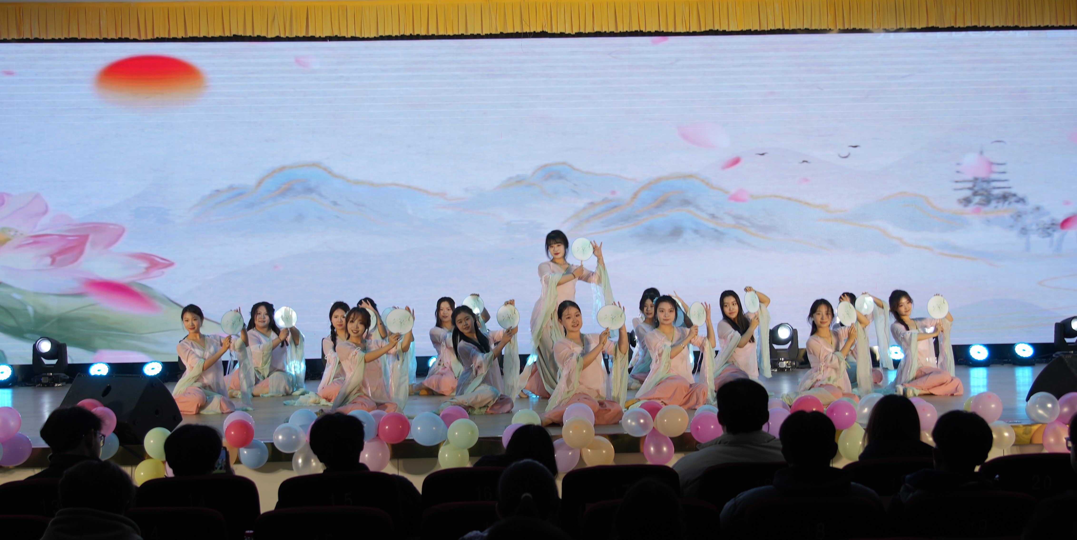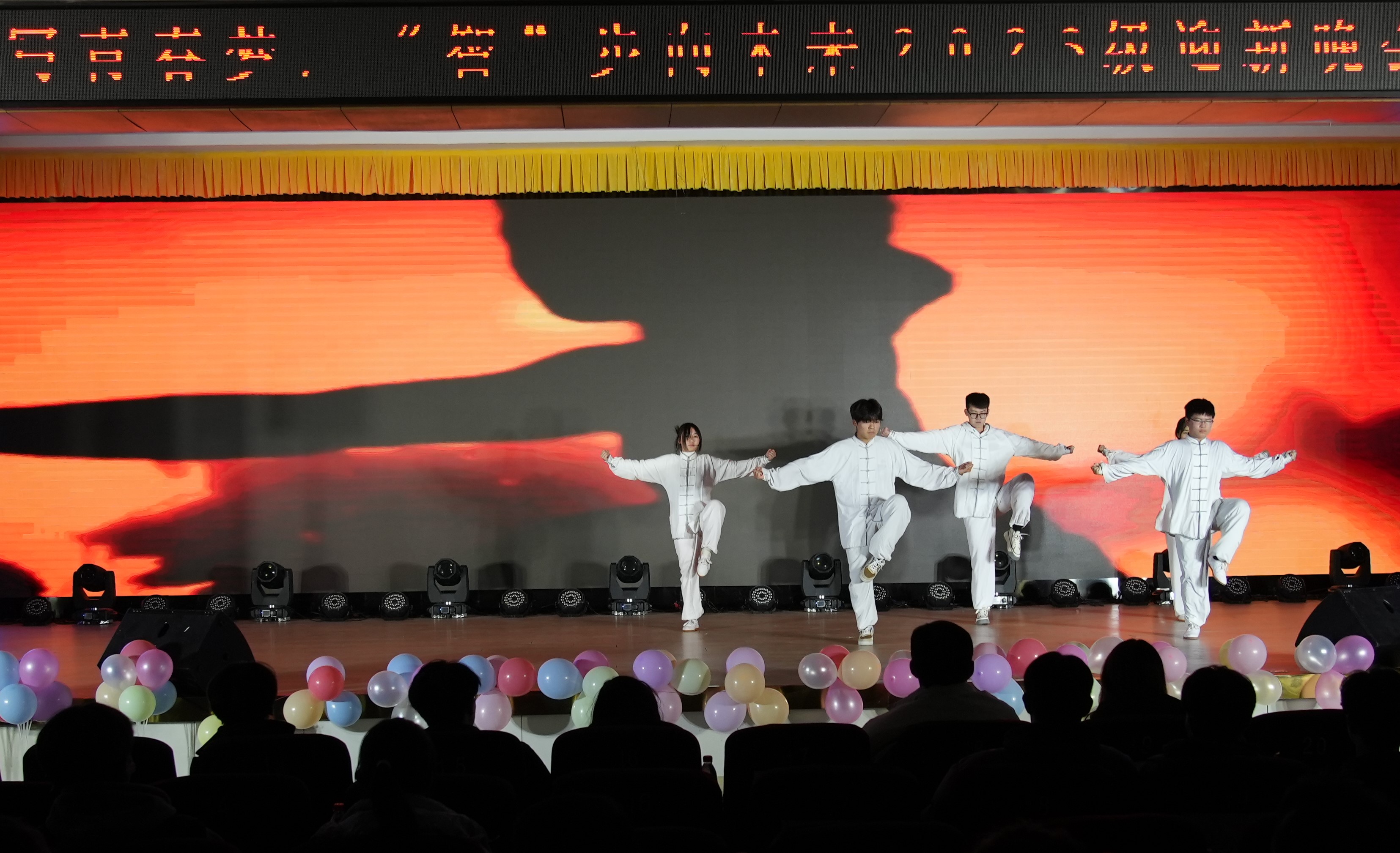 随着全场倒计时的结束,晚会在开场歌舞《奔跑的青春》中正式拉开帷幕。整场晚会分为《芳华待灼,砥砺深耕》《追光而行,循光而立》《以我青春,解码未来》三个篇章,包含歌曲、舞蹈、话剧、朗诵等12个精彩纷呈的节目。晚会现场氛围热烈,节目各具特色,观众们掌声不断。为了增添晚会趣味性,现场还设置了抽奖环节,在场观众积极参与其中,共同抽取一、二、三等奖。