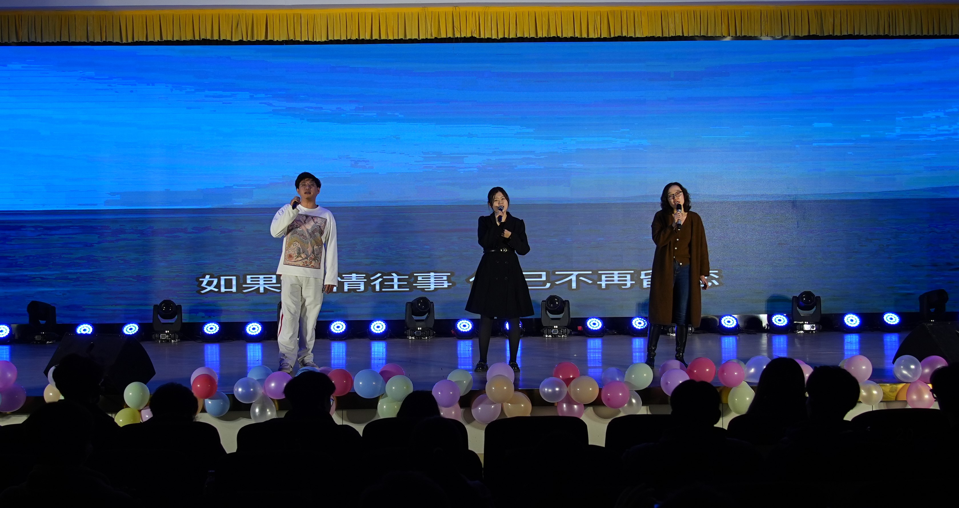 晚会来到《以我青春,解码未来》第三篇章。小品《反诈银行》幽默诙谐、表演滑稽,以喜剧的形式进行了反诈宣传,现场笑声掌声不断;音诗画《夜空中最亮的星》,教研室教师代表与同学们深情而有感染力的表演,让同学们不由为之触动;辅导员老师合唱《大海》从歌声中传达出对2023级新生的欢迎,展示出辅导员老师们的音乐才华;朗诵《奋进新征程》铿锵有力,表现出数科学子为祖国谱写新诗篇的坚定决心。
