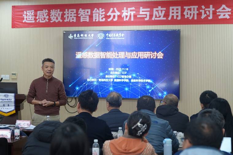 随后,CCF青岛分部主席赵建立教授进行了致辞。他指出,随着空间探测技术的快速发展,遥感科学无论在公司产品领域还是在产学研融合当中,其地位和价值日渐凸显,如何将其与大数据、人工智能技术有效融合,实现海量遥感数据的智能化处理和分析,为地球科学研究和应用提供更为精准、高效的支持,是我们需要重视的问题。同时,他还强调了CCF在遥感领域发展中的重要作用和责任。